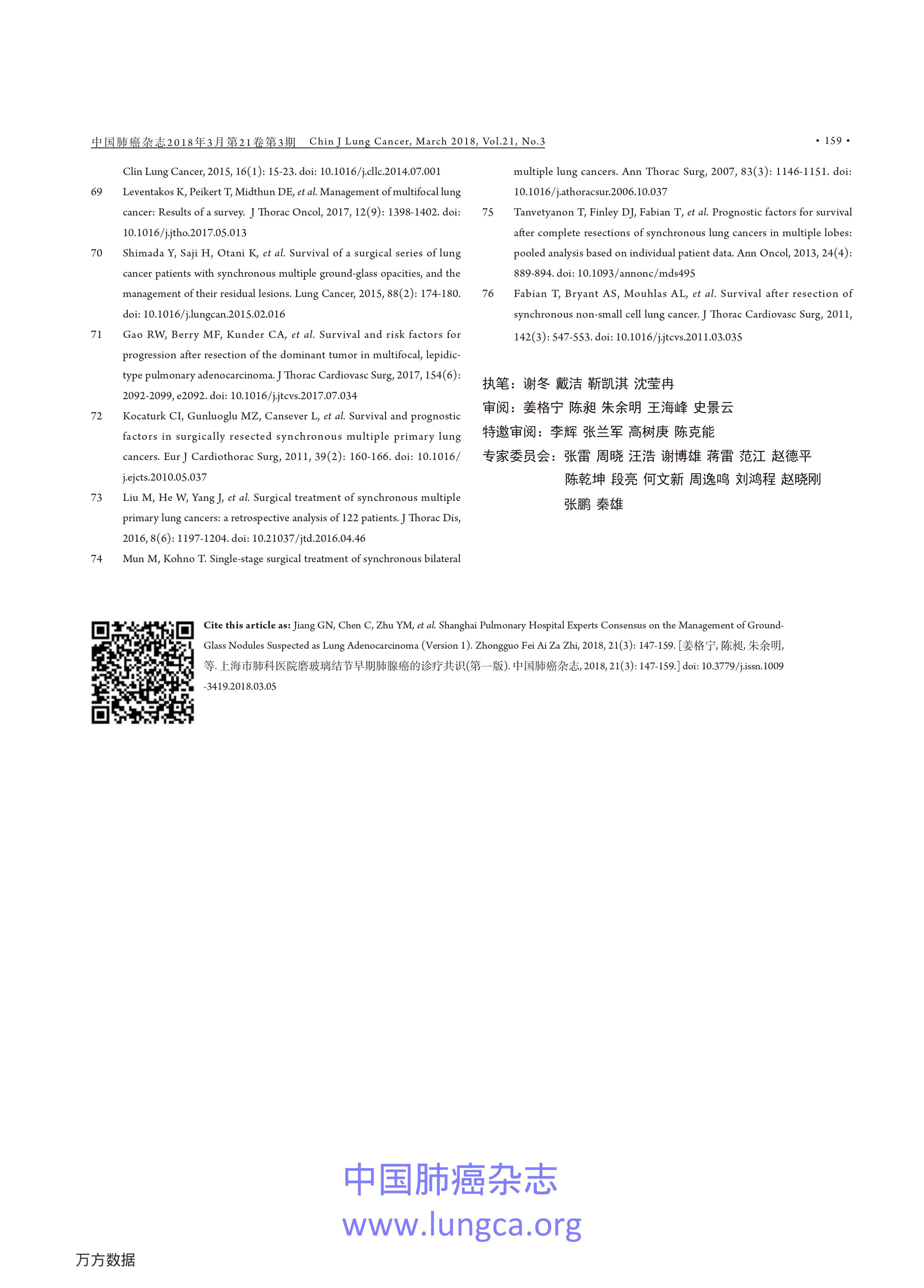 上海市肺科醫(yī)院磨玻璃結節(jié)早期肺腺癌的診療共識(第一版)
