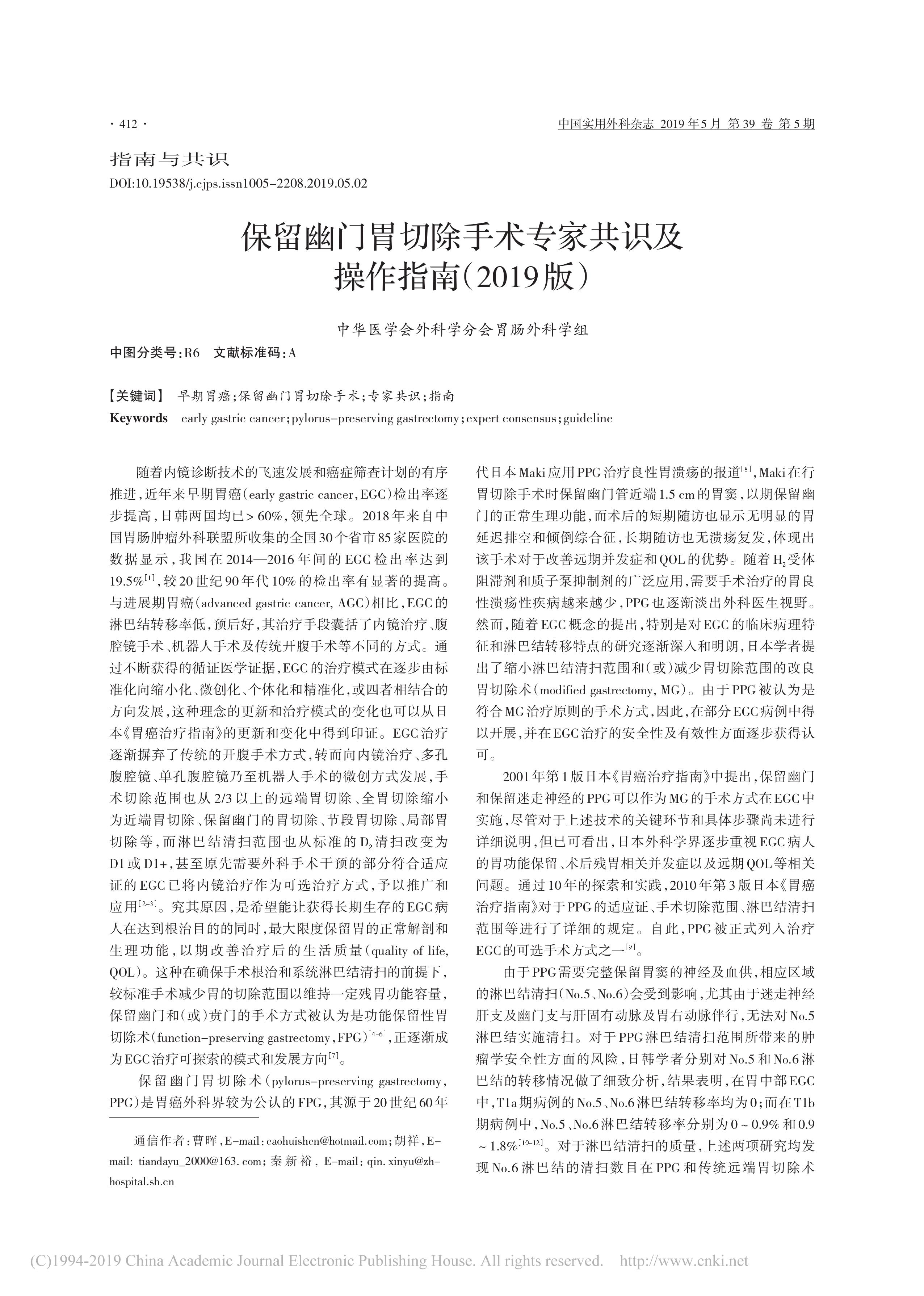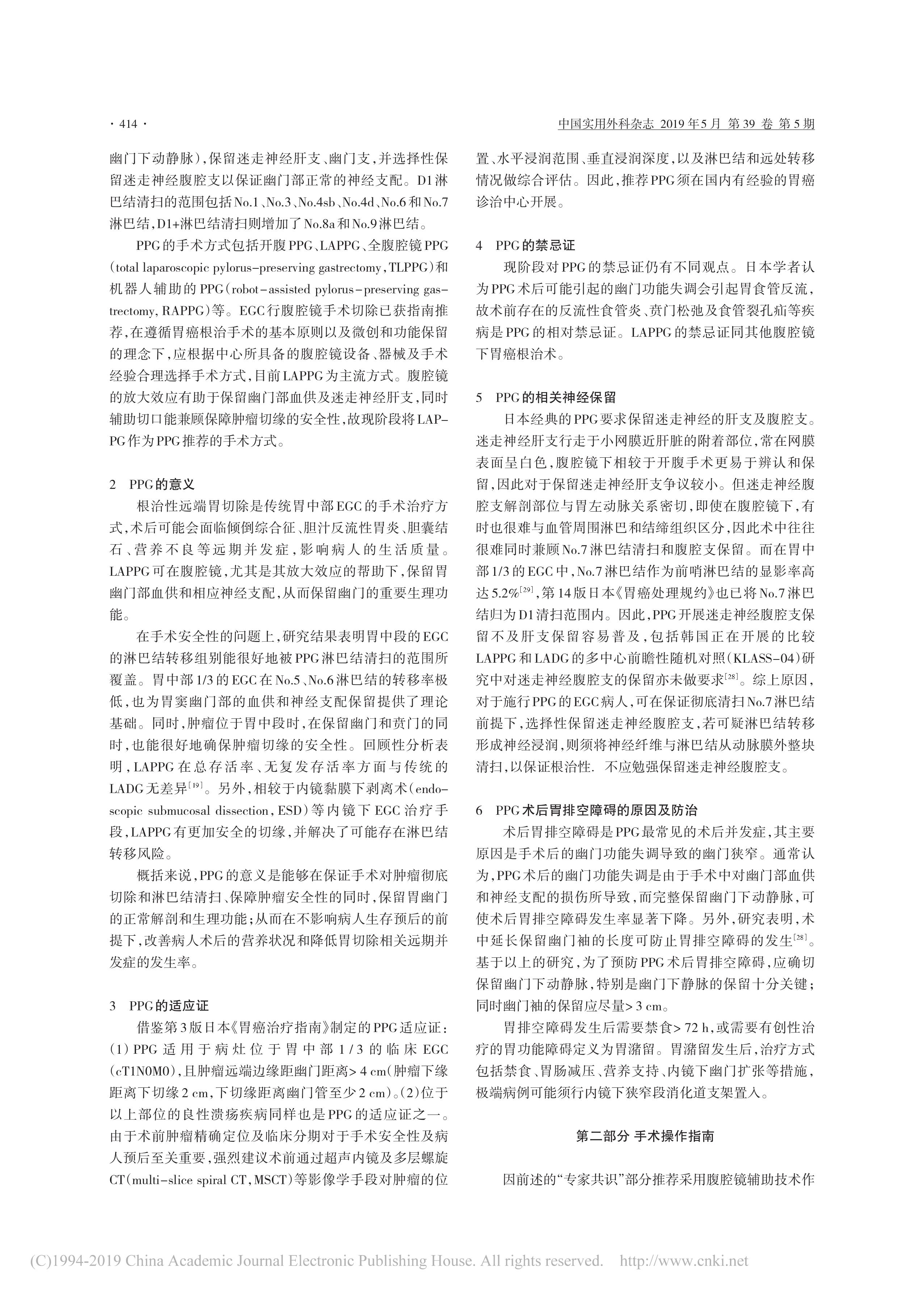 保留幽門(mén)胃切除手術(shù)專(zhuān)家共識(shí)及操作指南(2019 版)