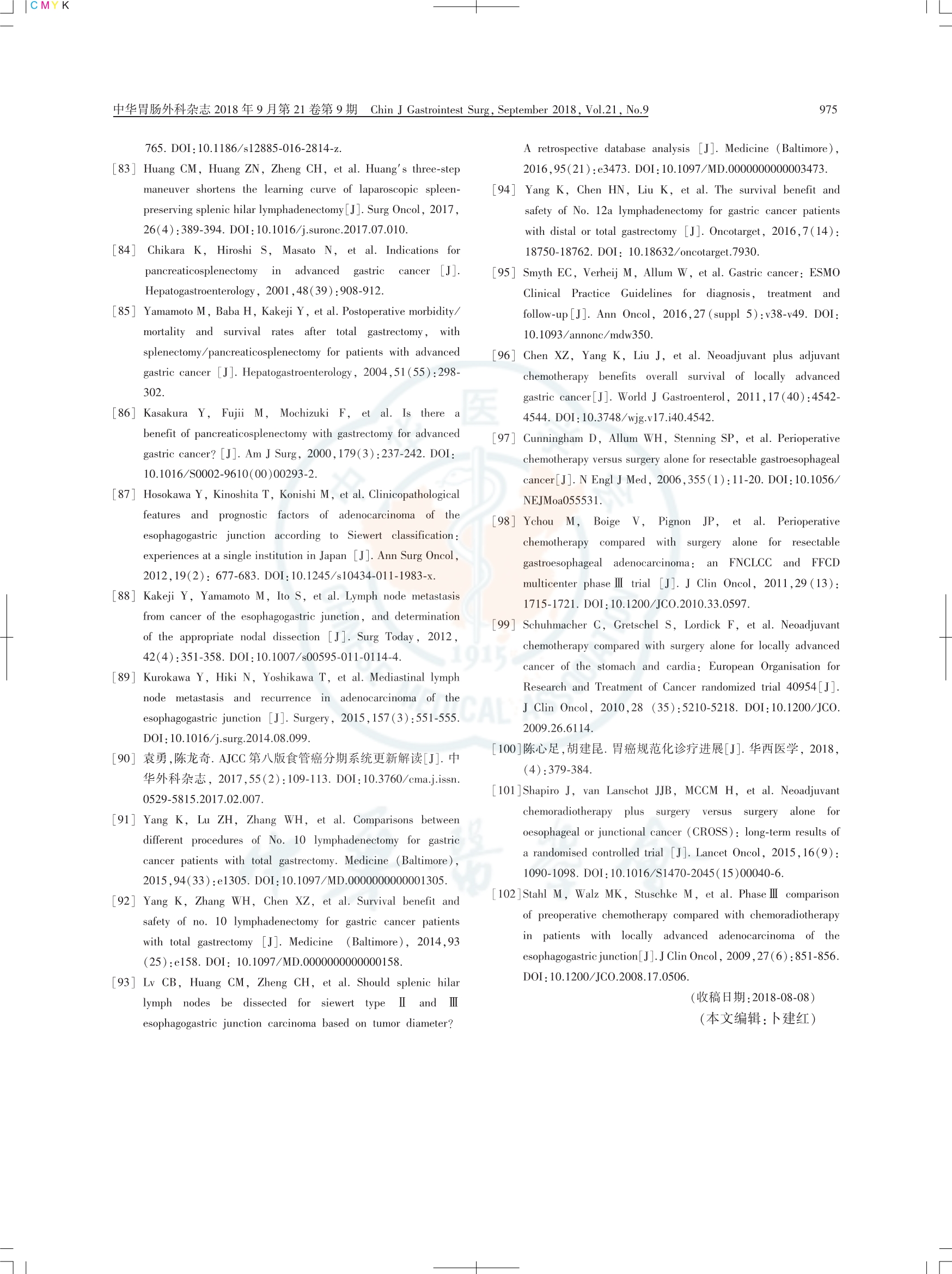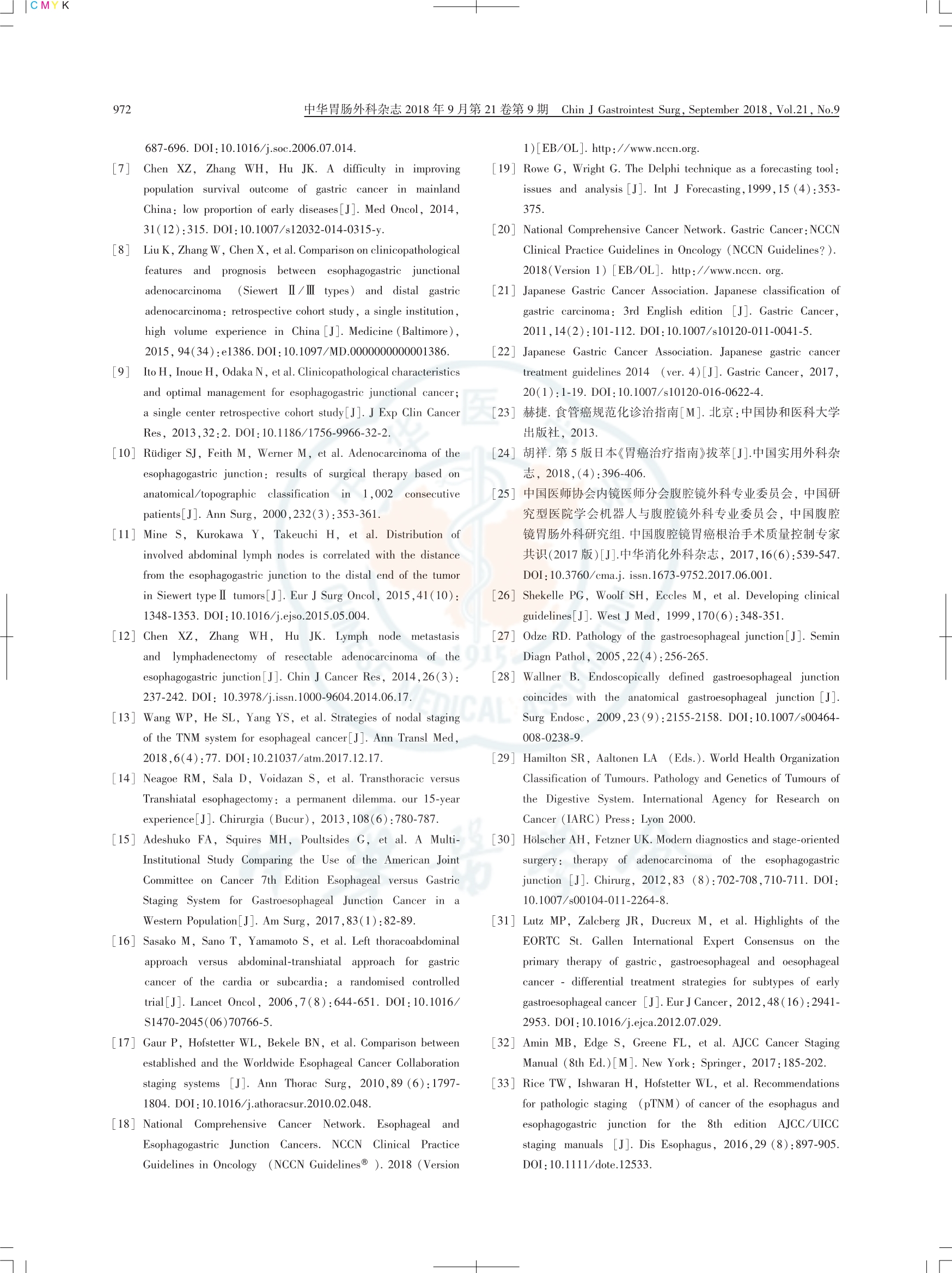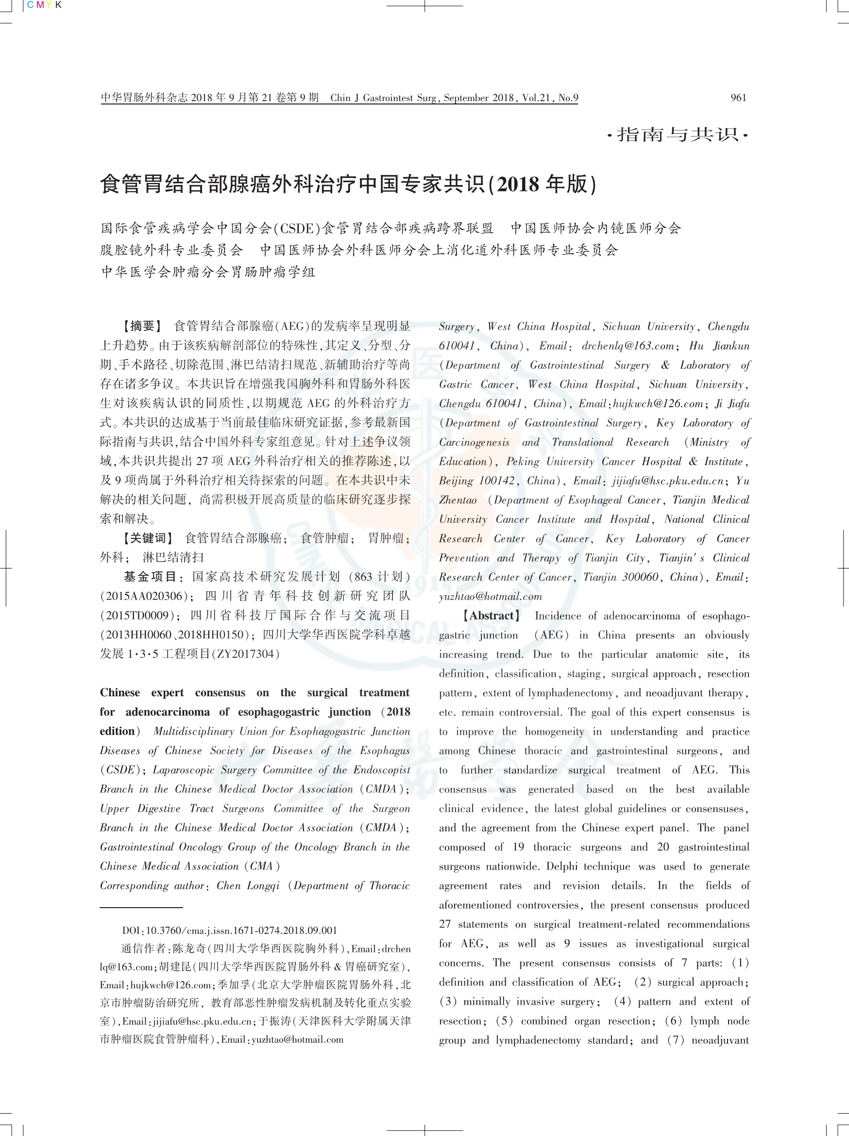 食管胃結(jié)合部腺癌外科治療中國專家共識(2018版)