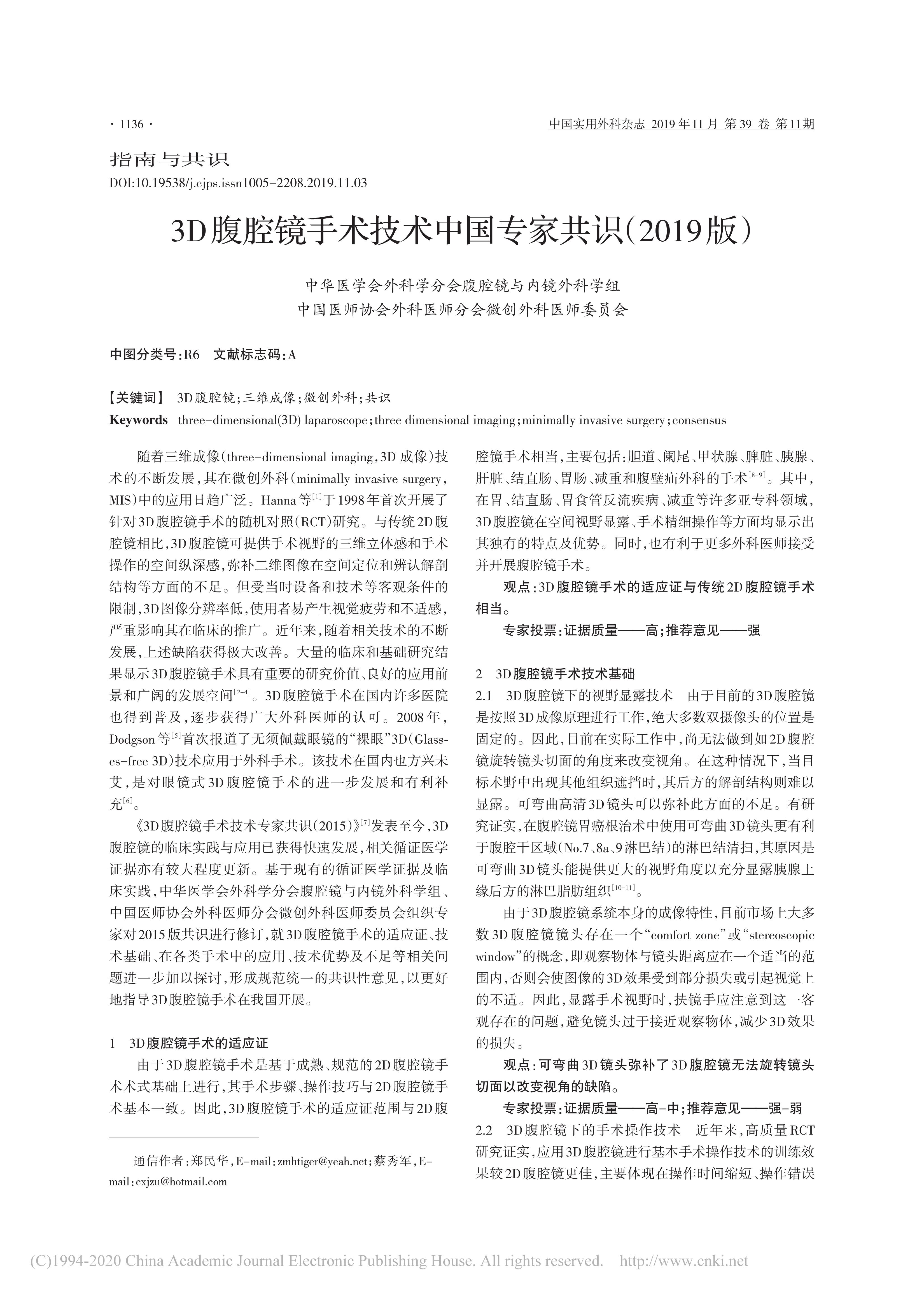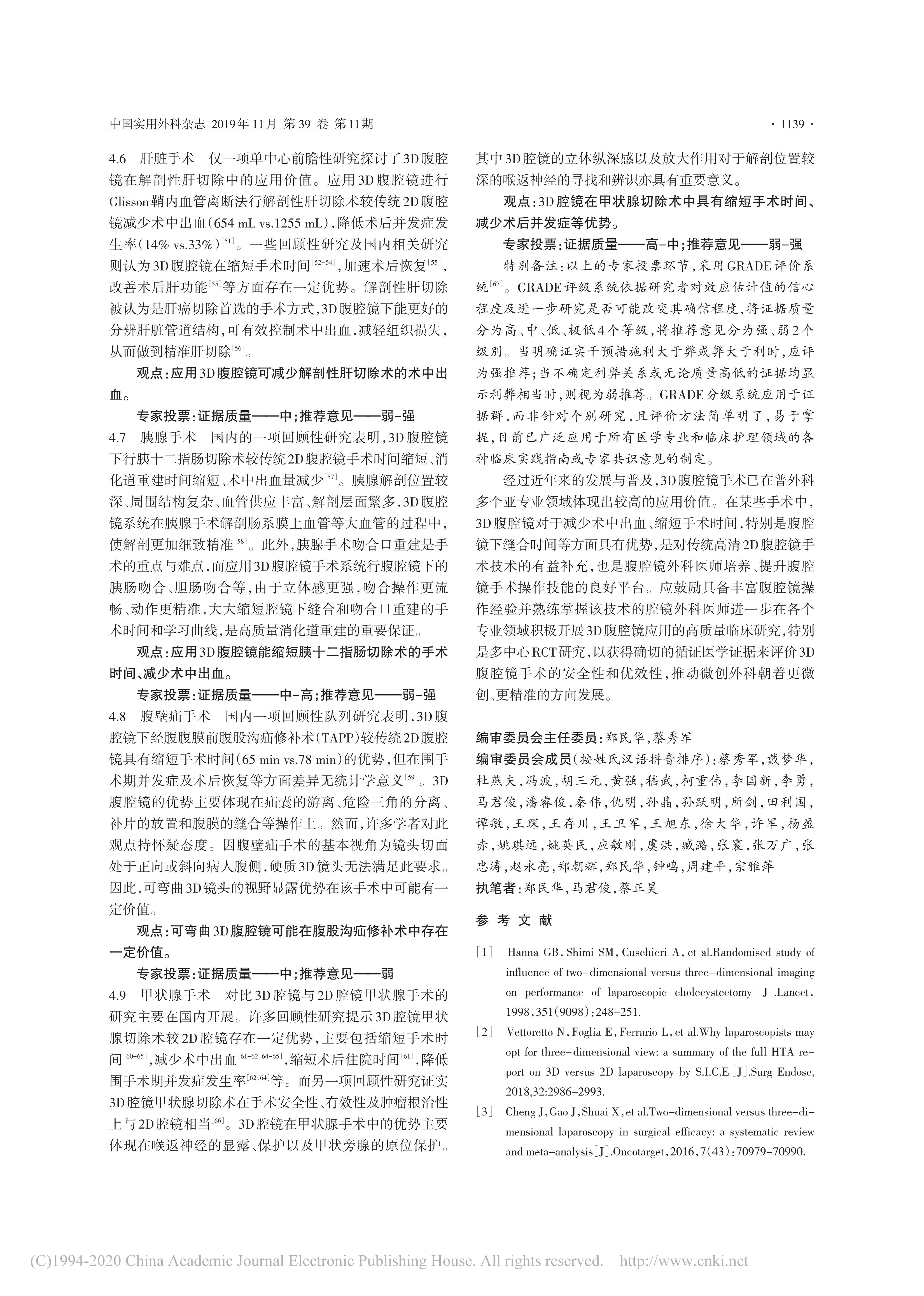 3D腹腔鏡手術(shù)技術(shù)中國專家共識(2019版)