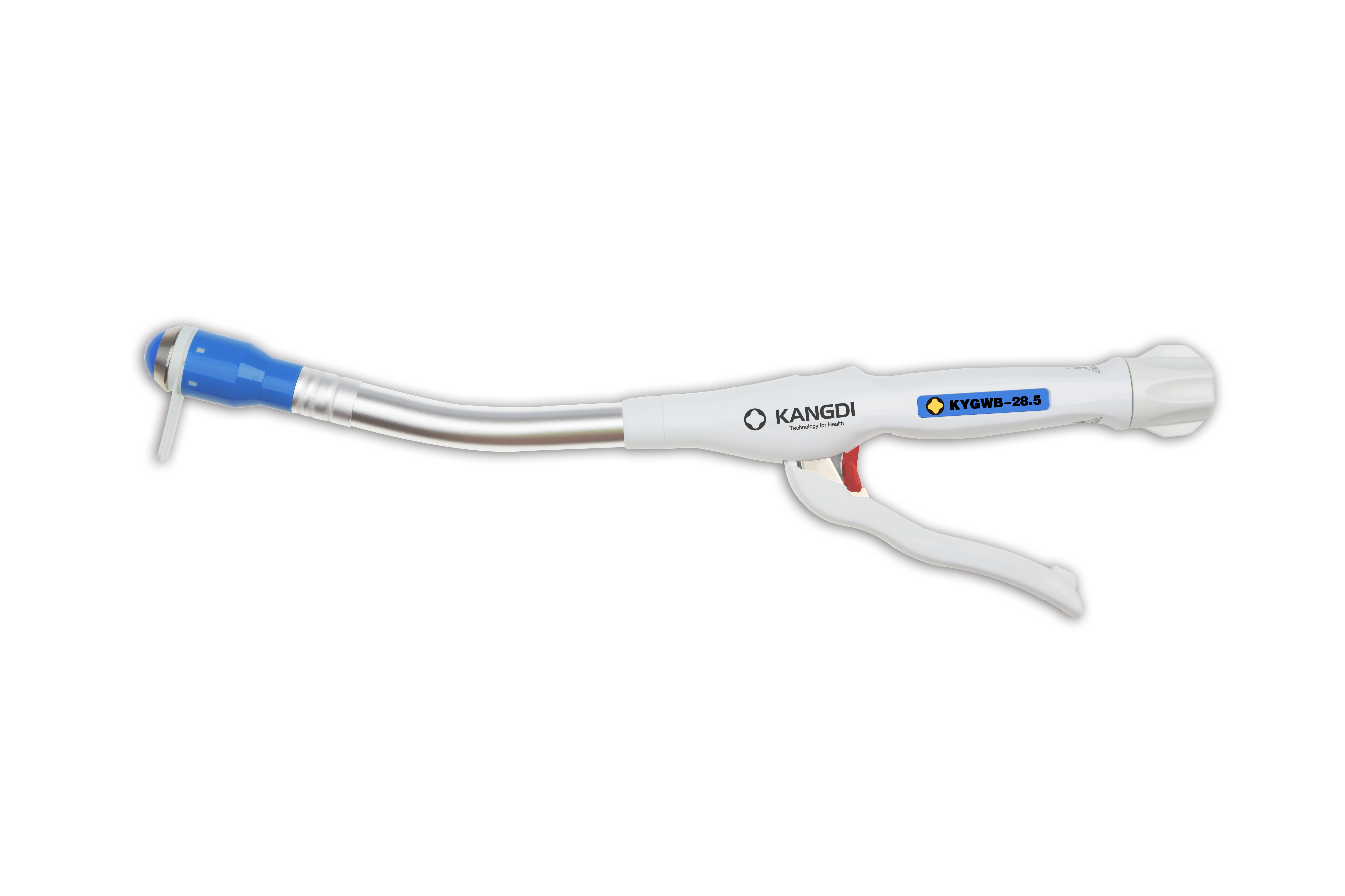 一次性使用管型消化道吻合器提供兩排交錯的環(huán)形鈦釘,縫釘成型后,器械內(nèi)環(huán)形刀片切除多余組織,形成圓形吻合口。