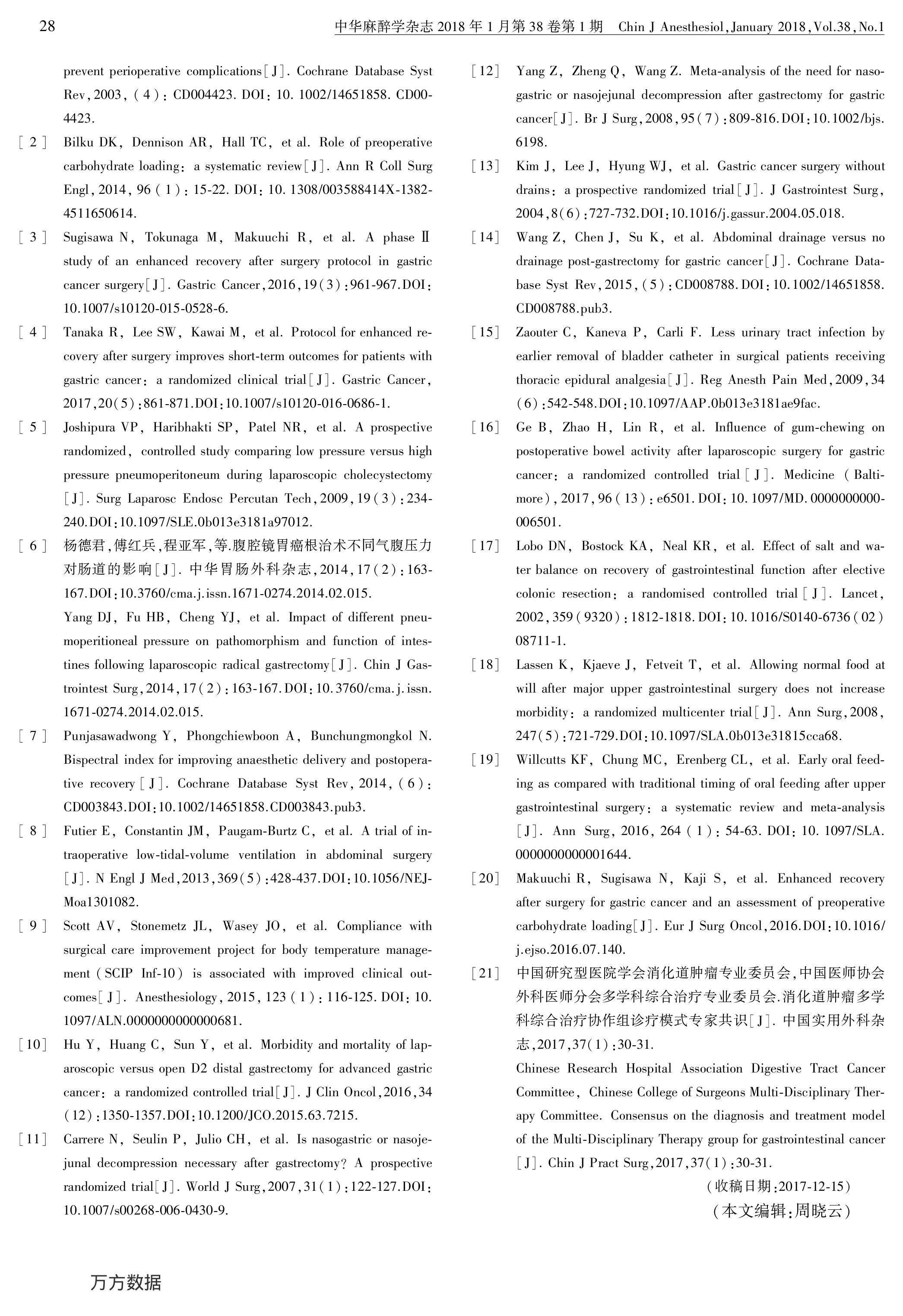 加速康復(fù)外科中國專家共識暨路徑管理指南(2018):胃手術(shù)部分