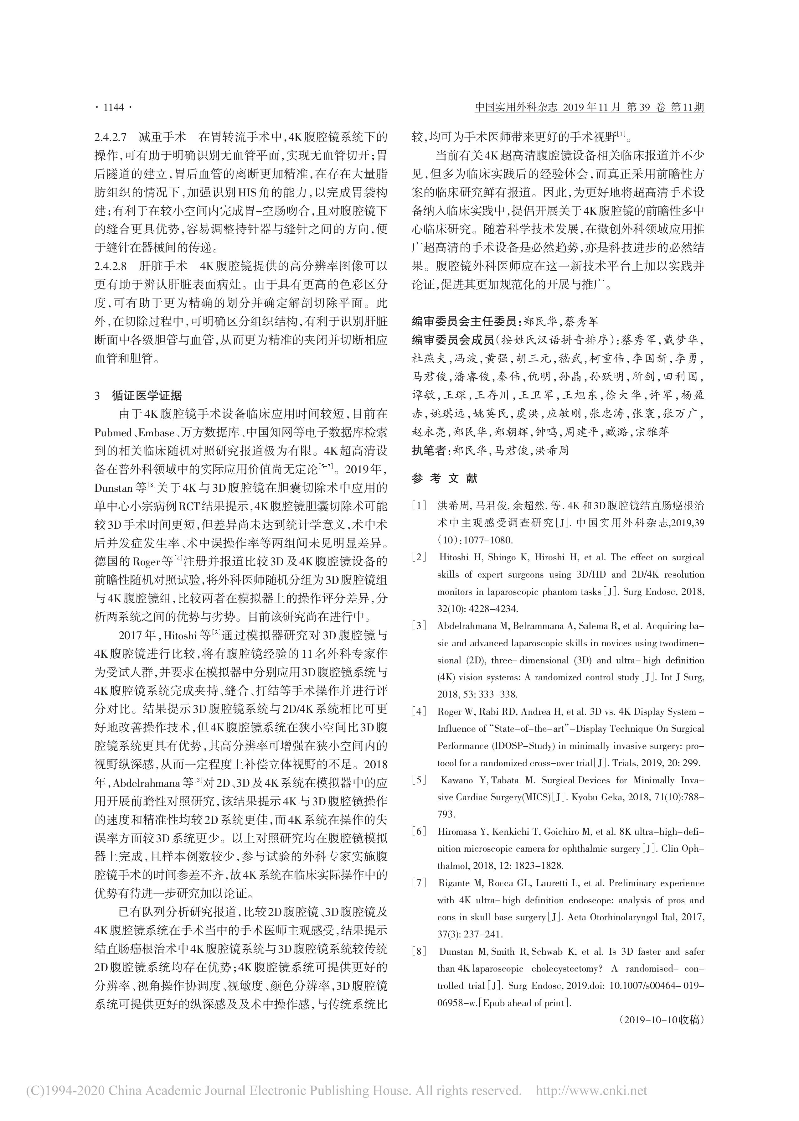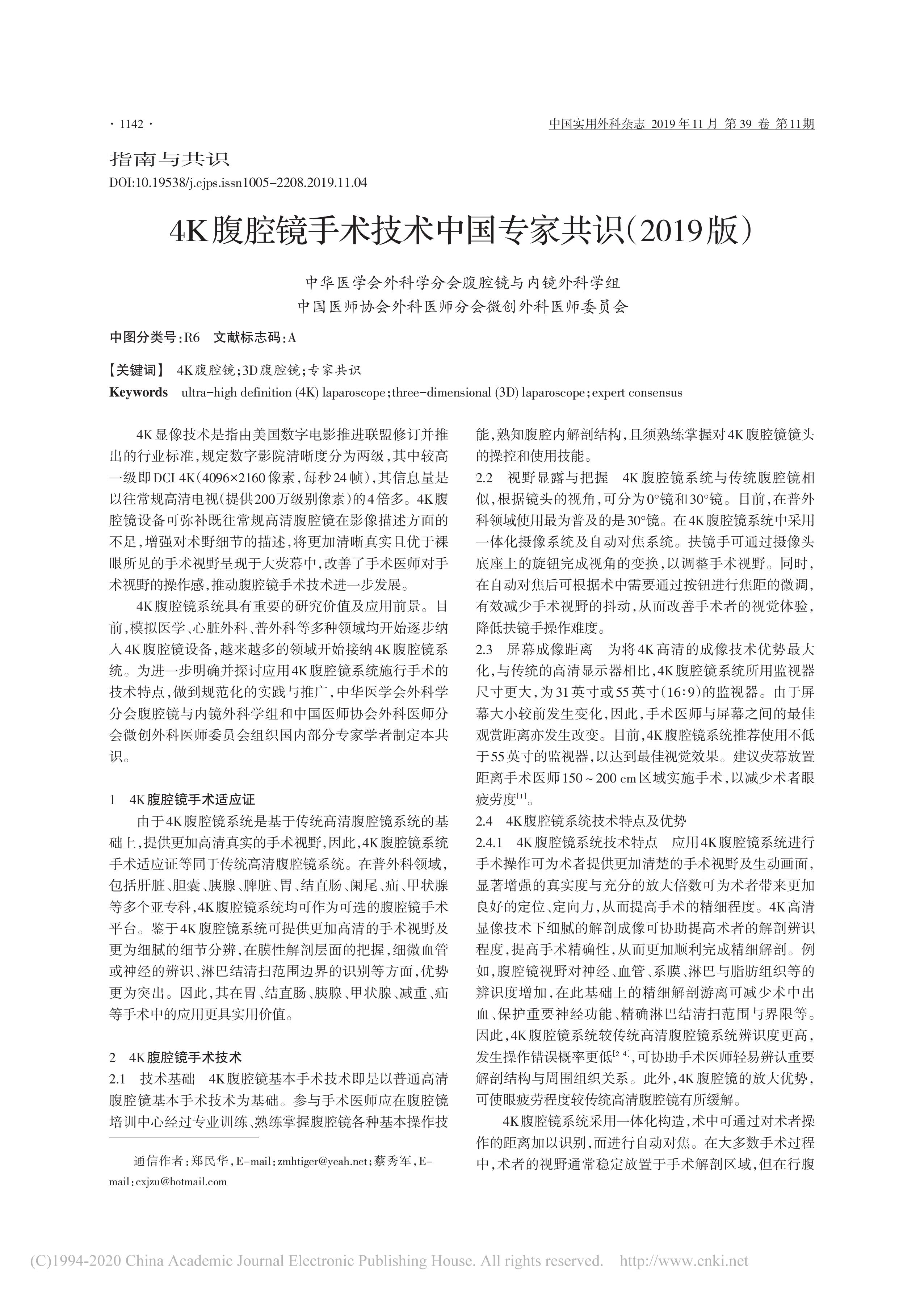 4K 腹腔鏡手術(shù)技術(shù)中國專家共識(2019 版)